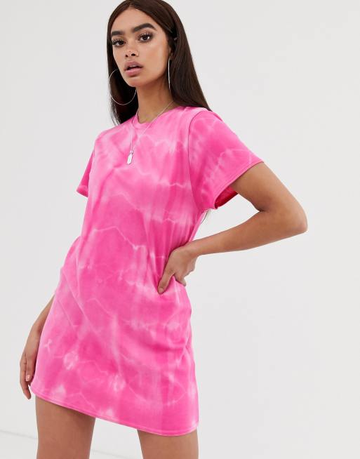 Prettylittlething T Shirt Dress In Pink Tie Dye Asos