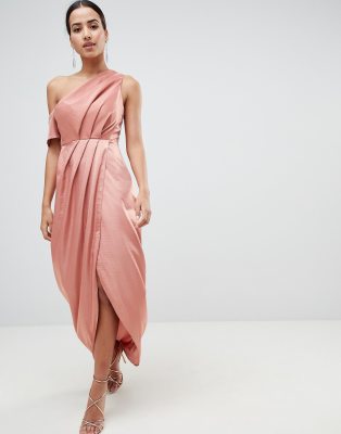 Asos Maxi Jurk Met Ontblote Schouder Van Gehamerd Satijn Asos