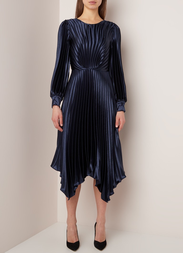 Sandro Asymmetrische Maxi Jurk Van Satijn Met Plisse De Bijenkorf