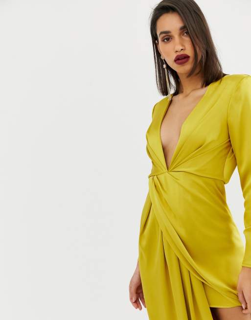 Asos Edition Diepuitgesneden Lange Satijnen Jurk Met Split Opzij