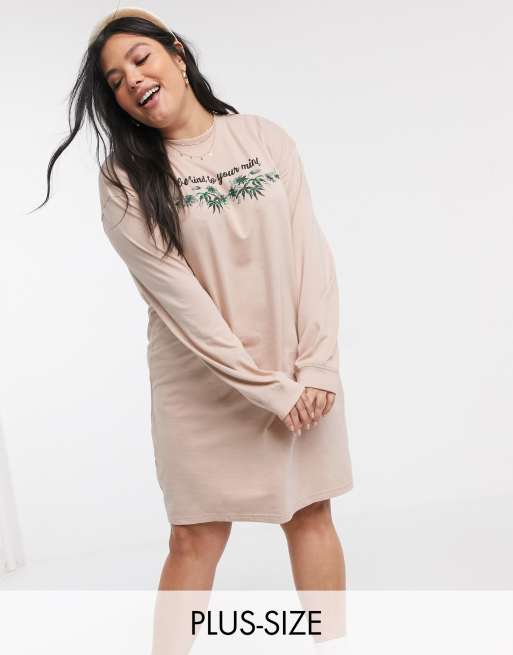 Daisy Street Plus Oversized Long Sleeve T Shirt Dress With Be Kind