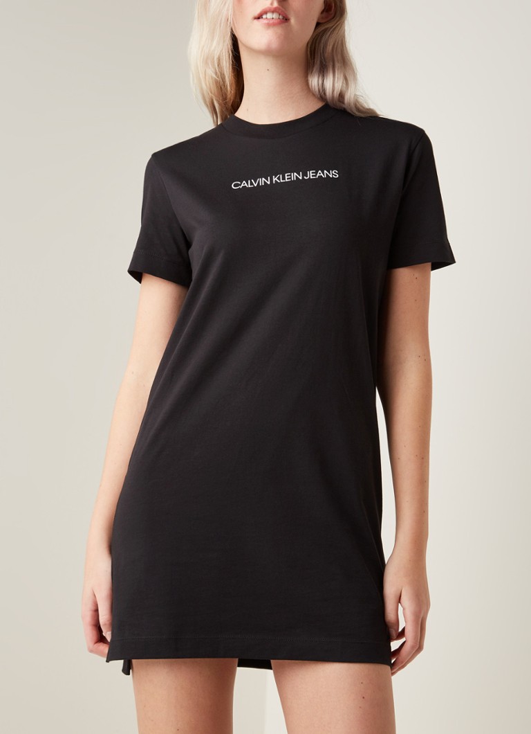 Calvin Klein Institutional T Shirt Jurk Met Logoprint Zwart De