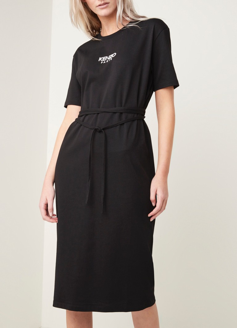 Kenzo T Shirt Jurk Met Logoprint En Strikceintuur Zwart De