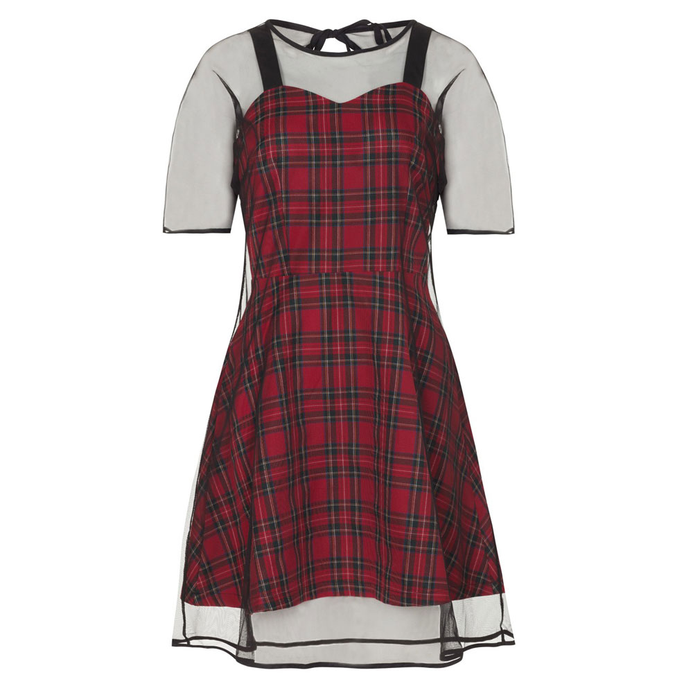 Jawbreaker Jawbreaker Skater Dress Tartan Mesh Red Black