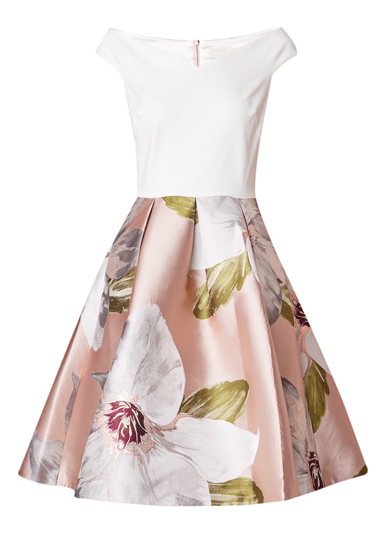 Ted Baker Valtia Off Shoulder A Lijn Jurk Met Bloemendessin Roze
