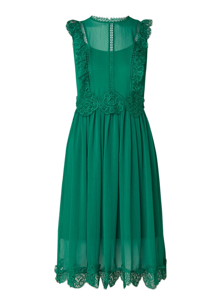 Ted Baker Porrla Midi Jurk Met Kant En Plooi Detail Groen Jurkensite