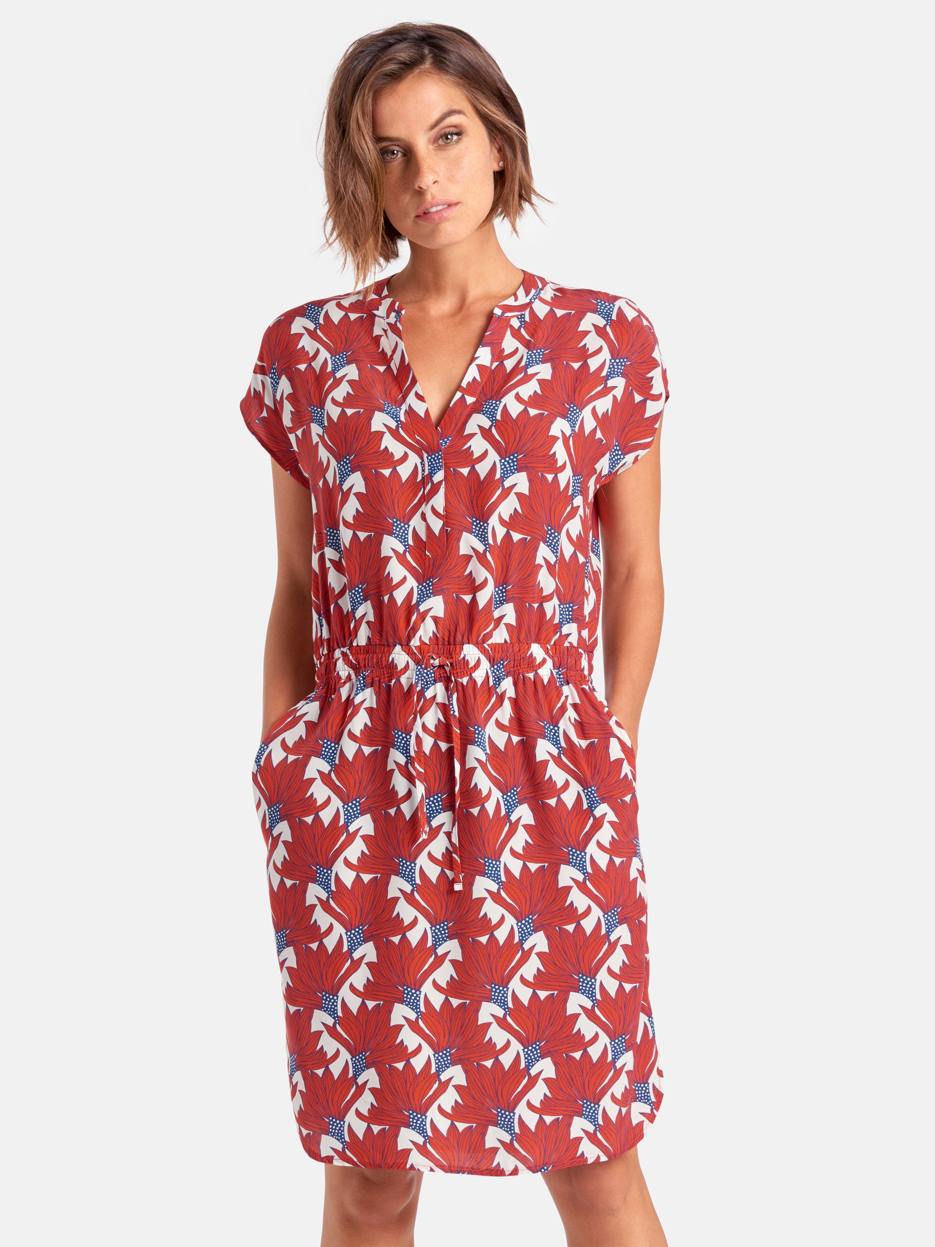 Peter Hahn Jurk Met V Hals Papaverrood Multicolour
