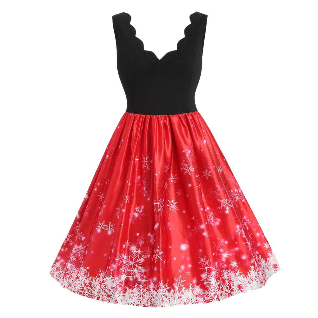 Fashion Christmas Dress Women Vintage Plus Size 5xl Snowflake