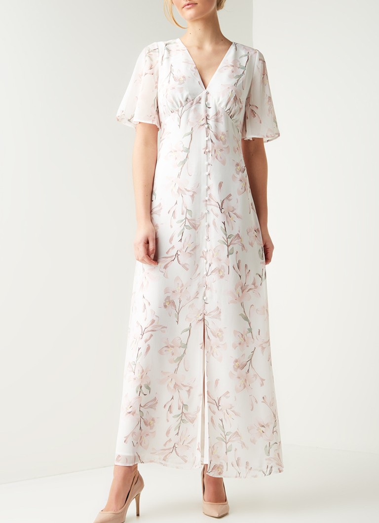 Warehouse Maxi Jurk Met Vlindermouw En Bloemenprint Roze De