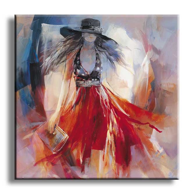 Schilderij Modern Gekleedde Vrouw Met Rode Jurk