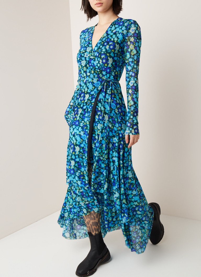 Ganni Maxi Wikkeljurk Van Mesh Met Dessin En Volant Blauw De