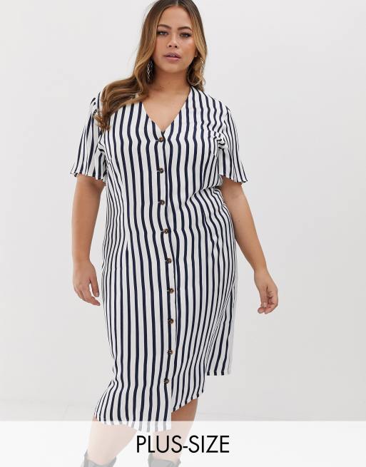 Prettylittlething Plus Doorgeknoopte Midi Jurk Met Zwart En