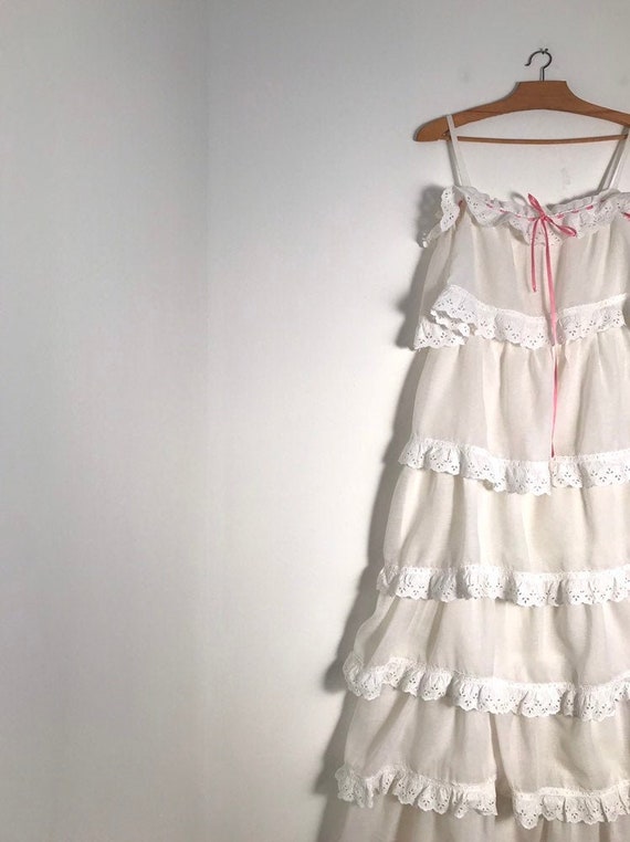 Vintage Witte Mouwloze Lange Ruches Jurk Met Spaghettibandjes Etsy