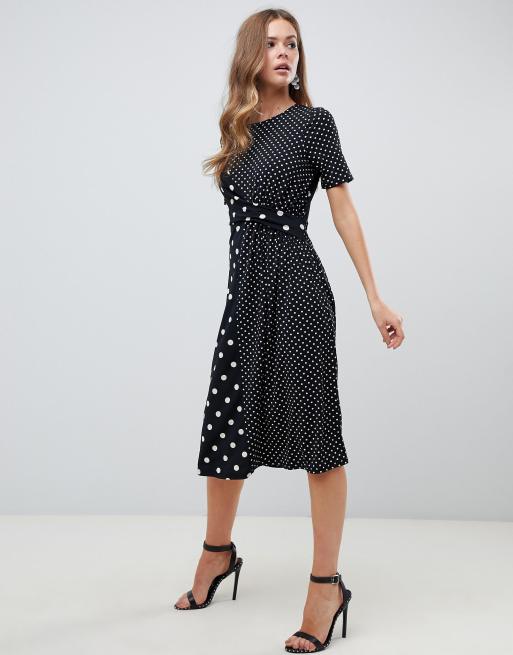 Asos Design Zwart Wit Gestipte Jurk Met Gedraaide Voorkant