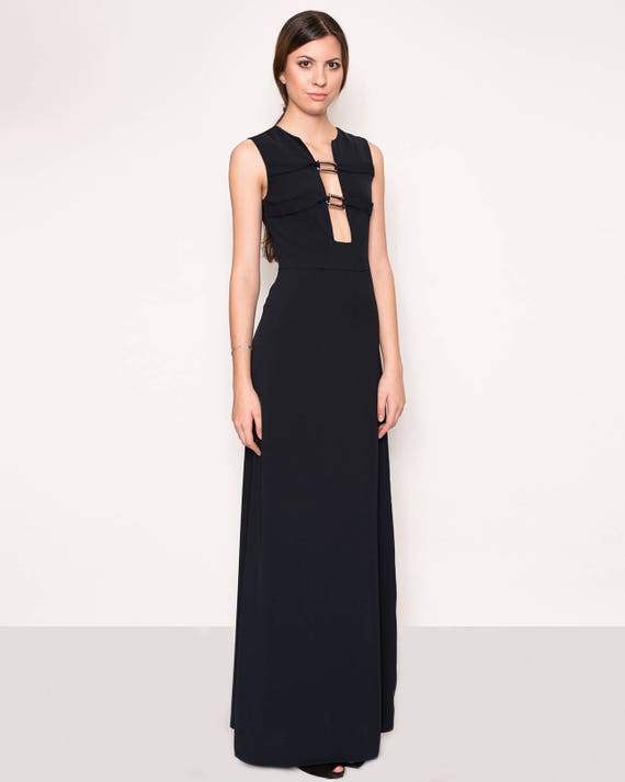 Zwarte Avondjurk Diepe Decollete Knippen Formele Kleding Etsy