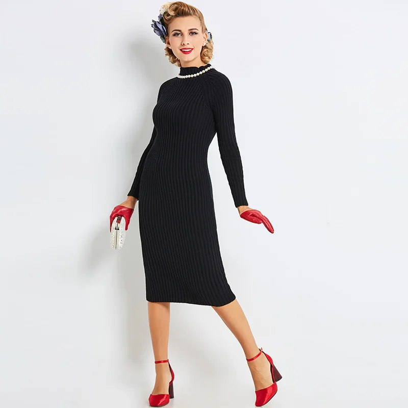 Groothandel Zwarte Trui Losse Jurk Met Dripped Kraag Wereldwijde