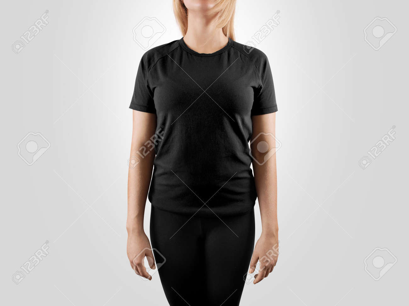 Lege Zwarte T Shirt Ontwerp Mockup Geisoleerd Vrouwen T Shirt