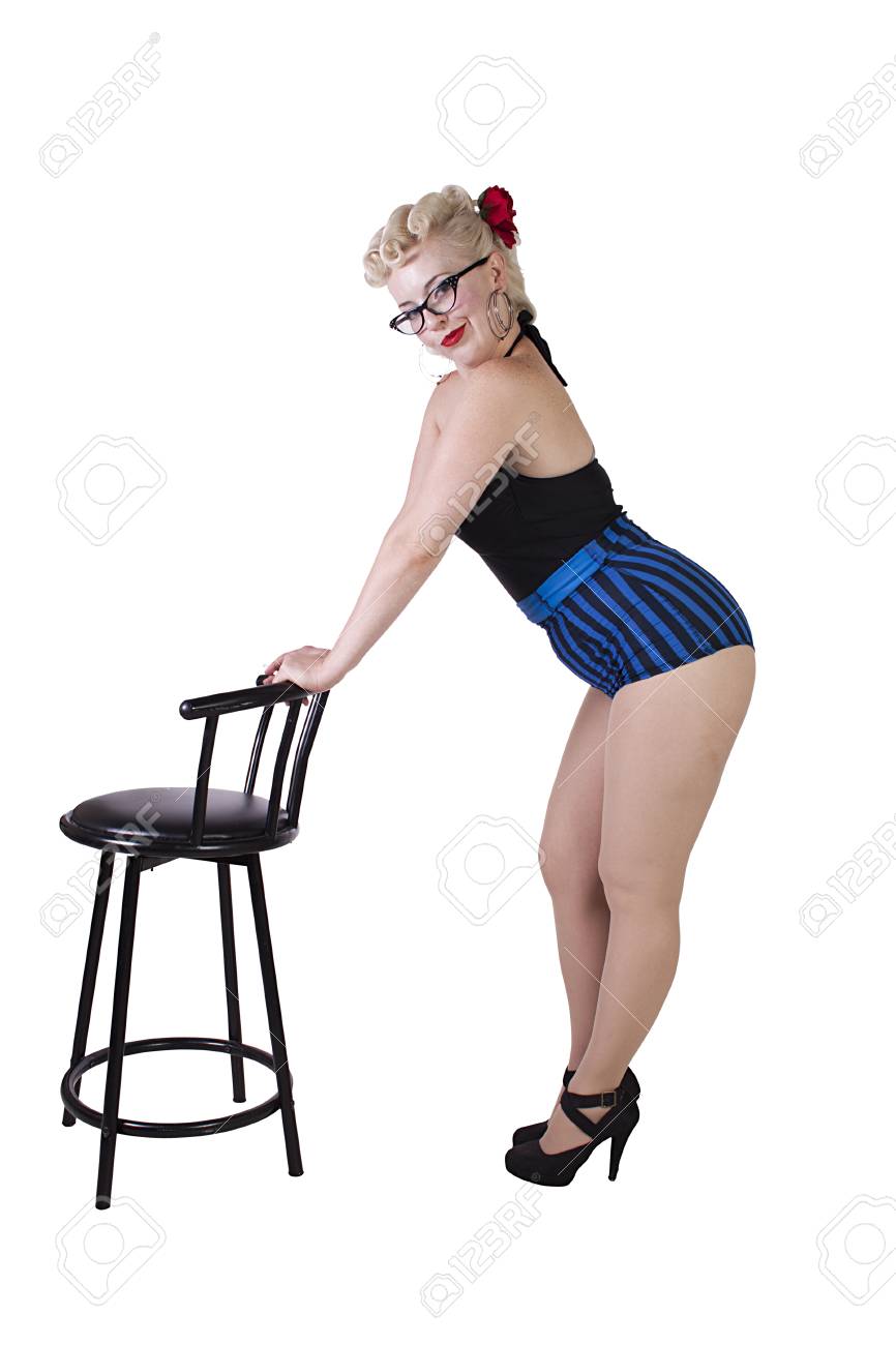 Vrouw In Pin Up Jurk Zwempak Geisoleerde Witte Achtergrond
